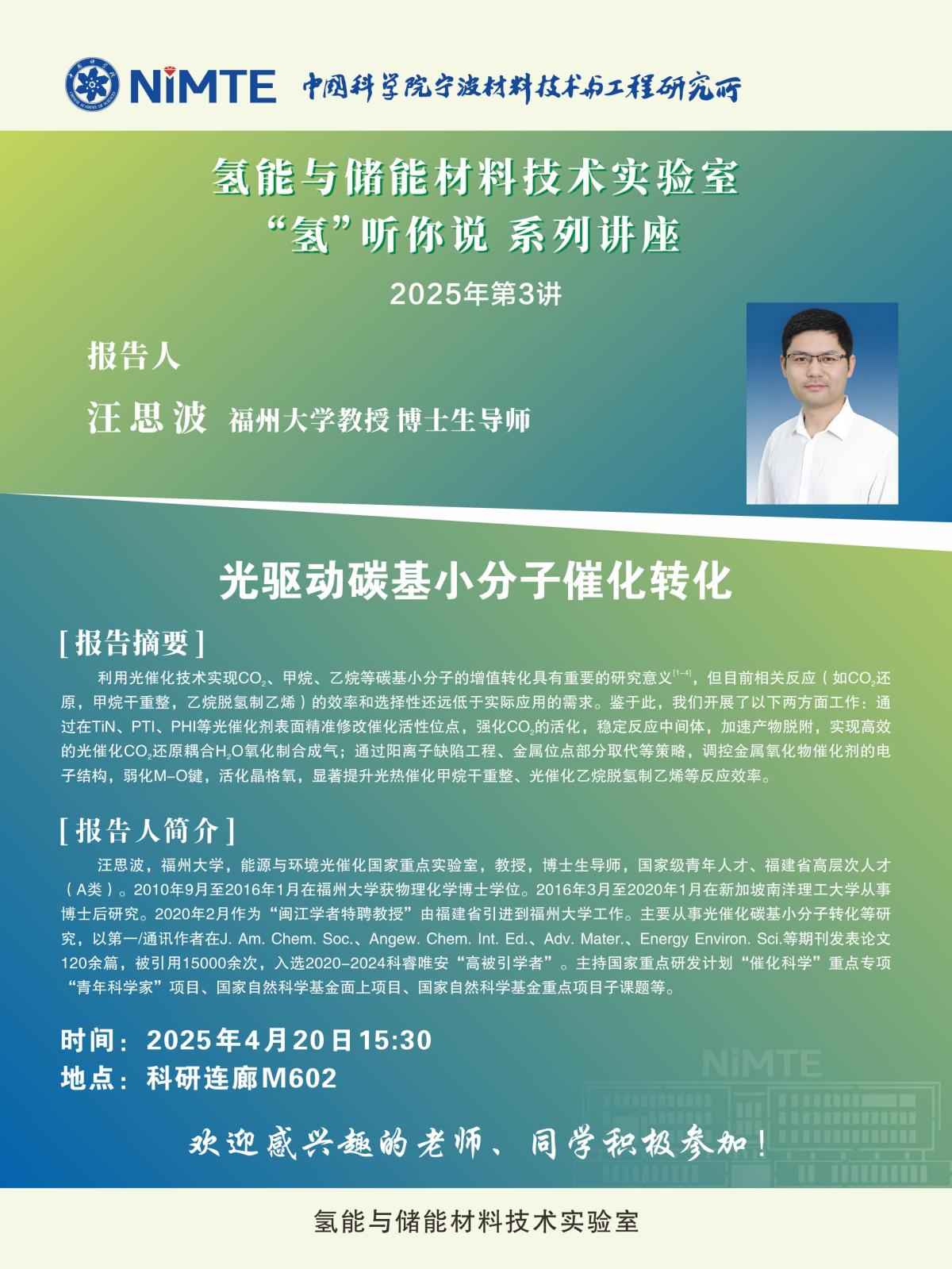 光驱动碳基小分子催化转化——“氢”听你说系列讲座