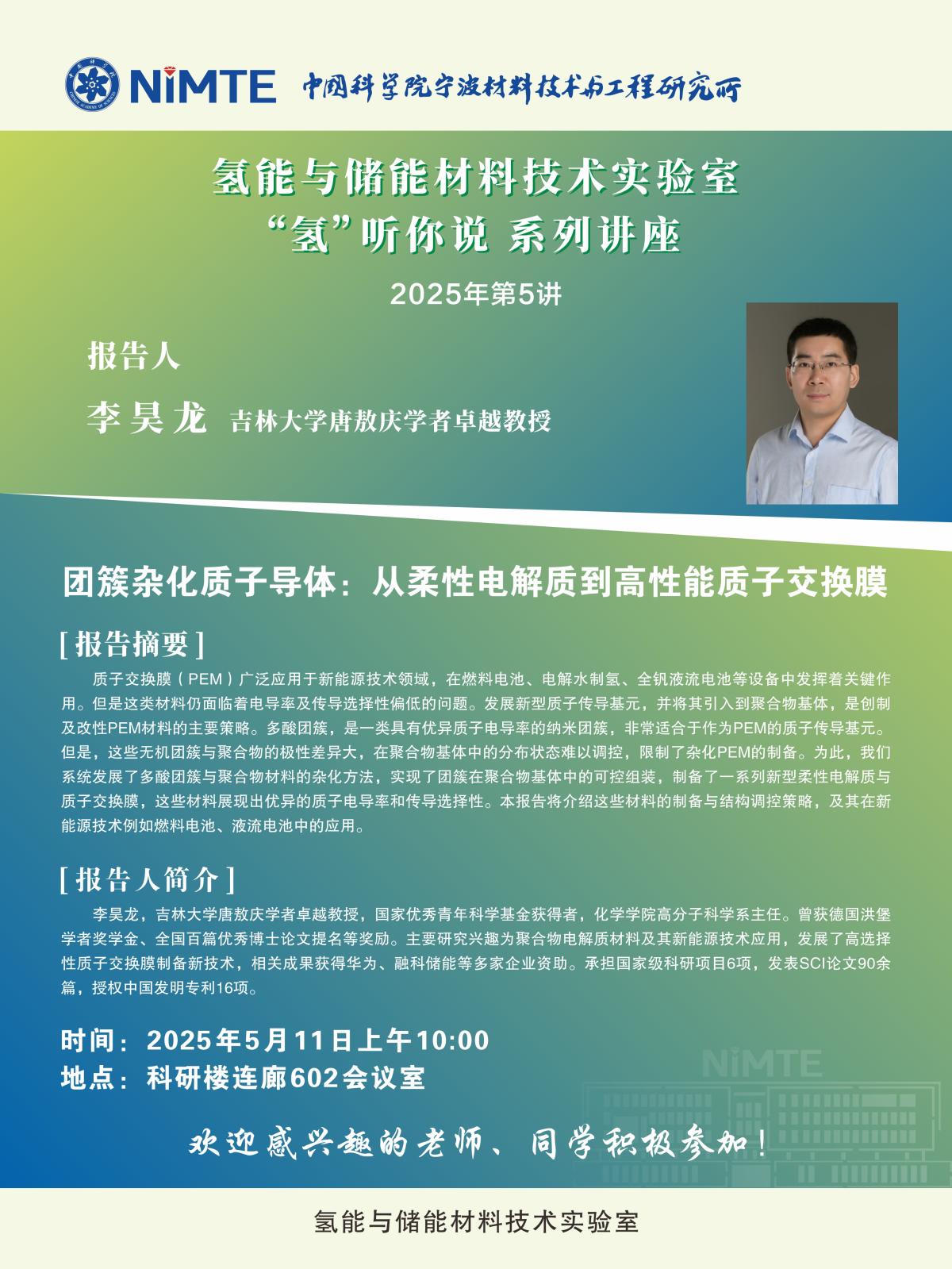 团簇杂化质子导体:从柔性电解质到高性能质子交换膜——“氢”听你说系列讲座