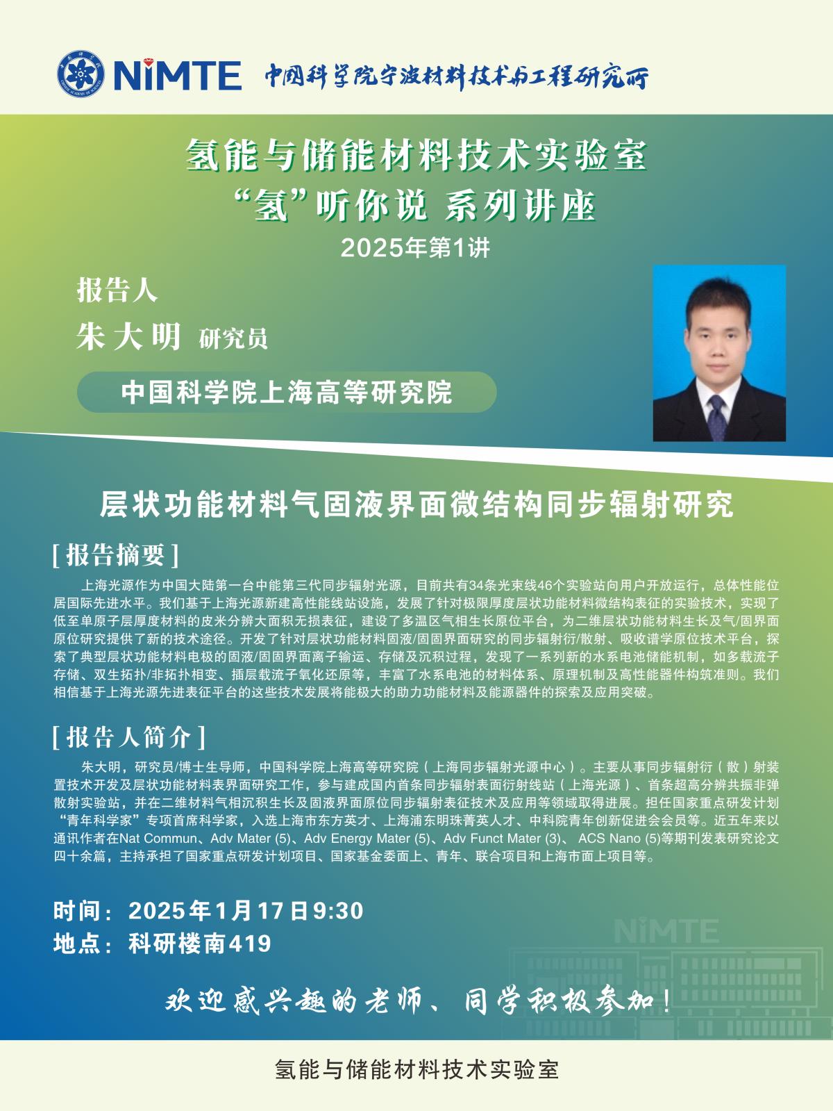 层状功能材料气固液界面微结构同步辐射研究——“氢”听你说系列讲座